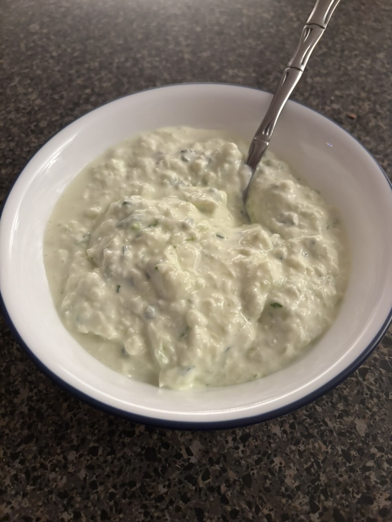 Nothing really to say here, it’s just something I wanted to not have to look up next time. And it’s really easy to make at home. It’s great on pita chips or gyros.